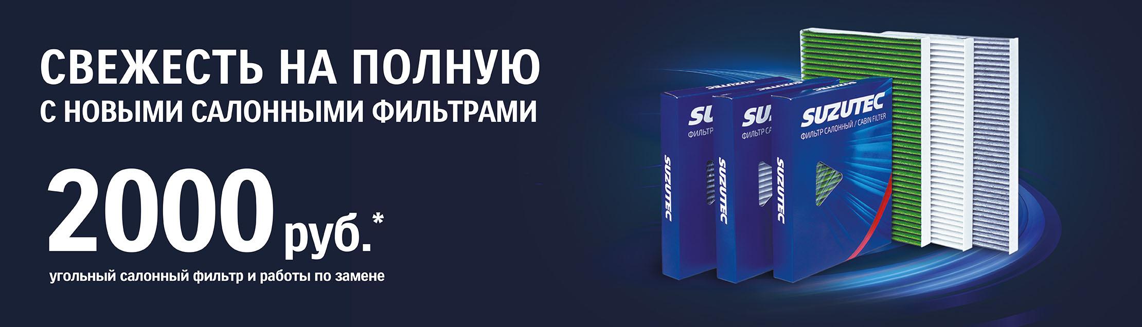 - 2 000 руб.* - стоимость работ и запчастей при замене на угольный салонный фильтр SUZUTEC;